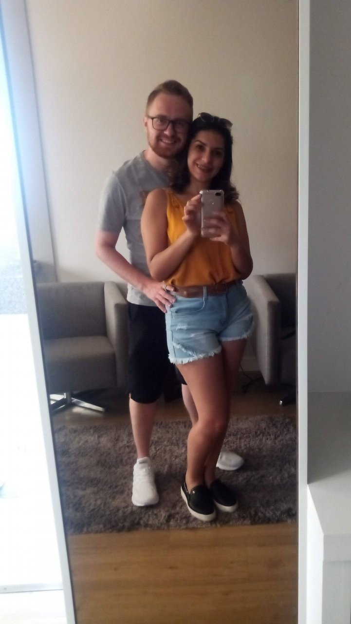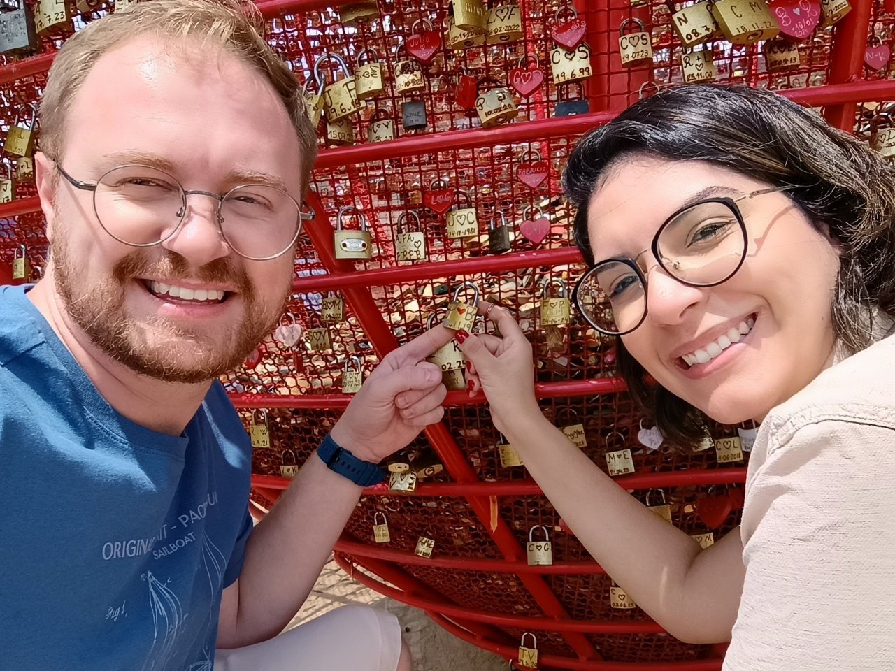 Mas por um acaso da vida (ou um cuidado divino), a viagem da Pamela não aconteceu. E foi aí que ela remarcou… para embarcar junto com o Bruno. Nossa primeira viagem juntos, com apenas dois meses de namoro.